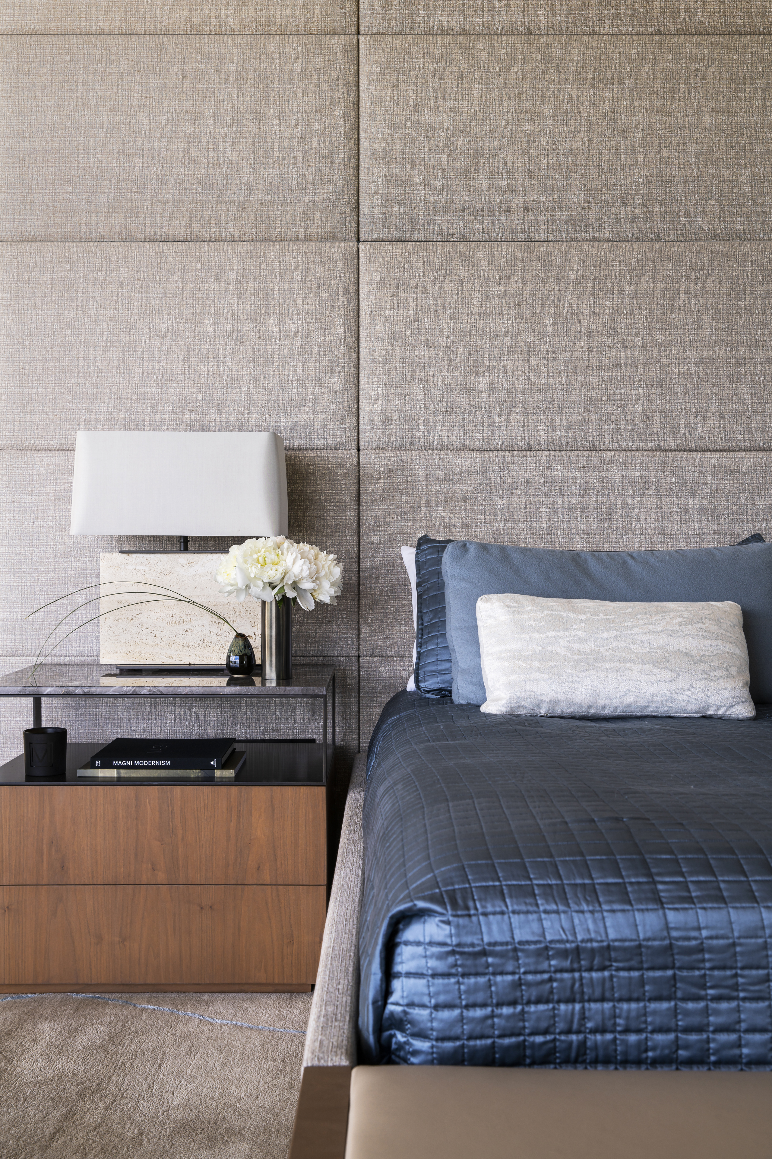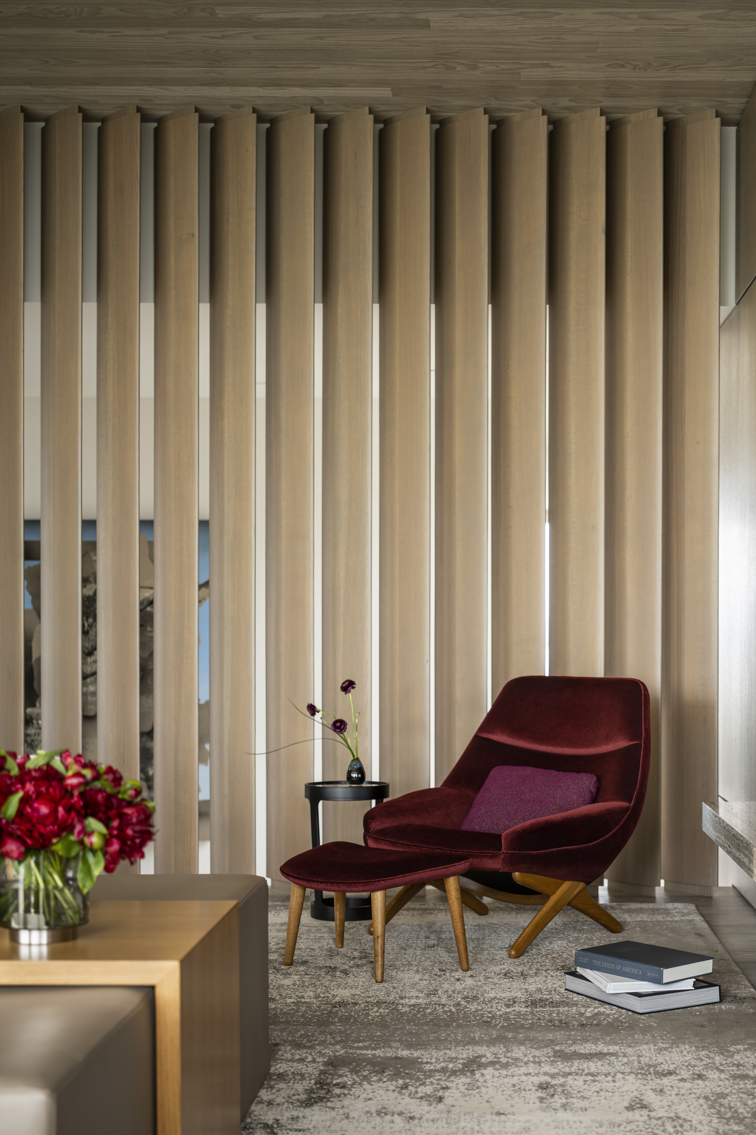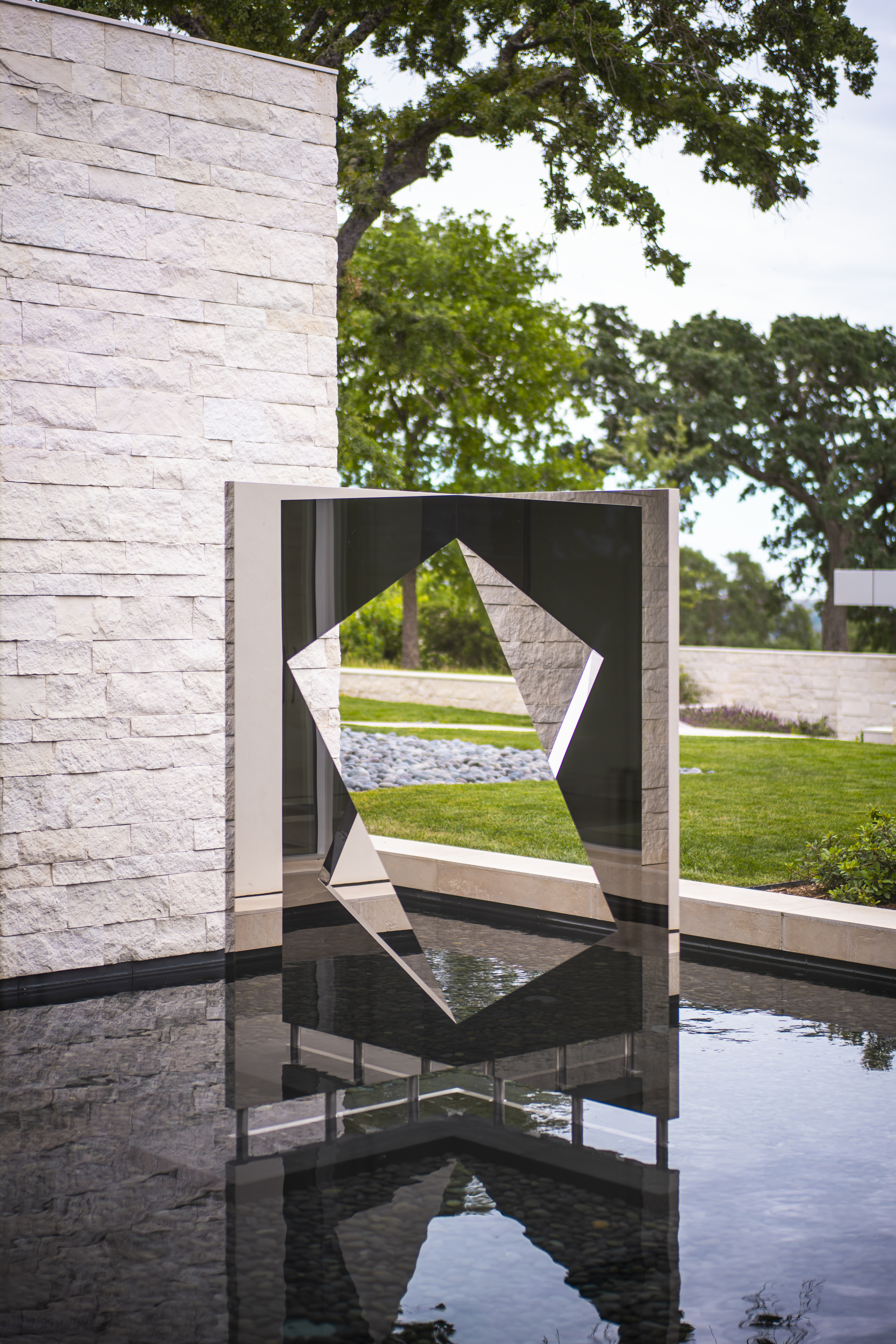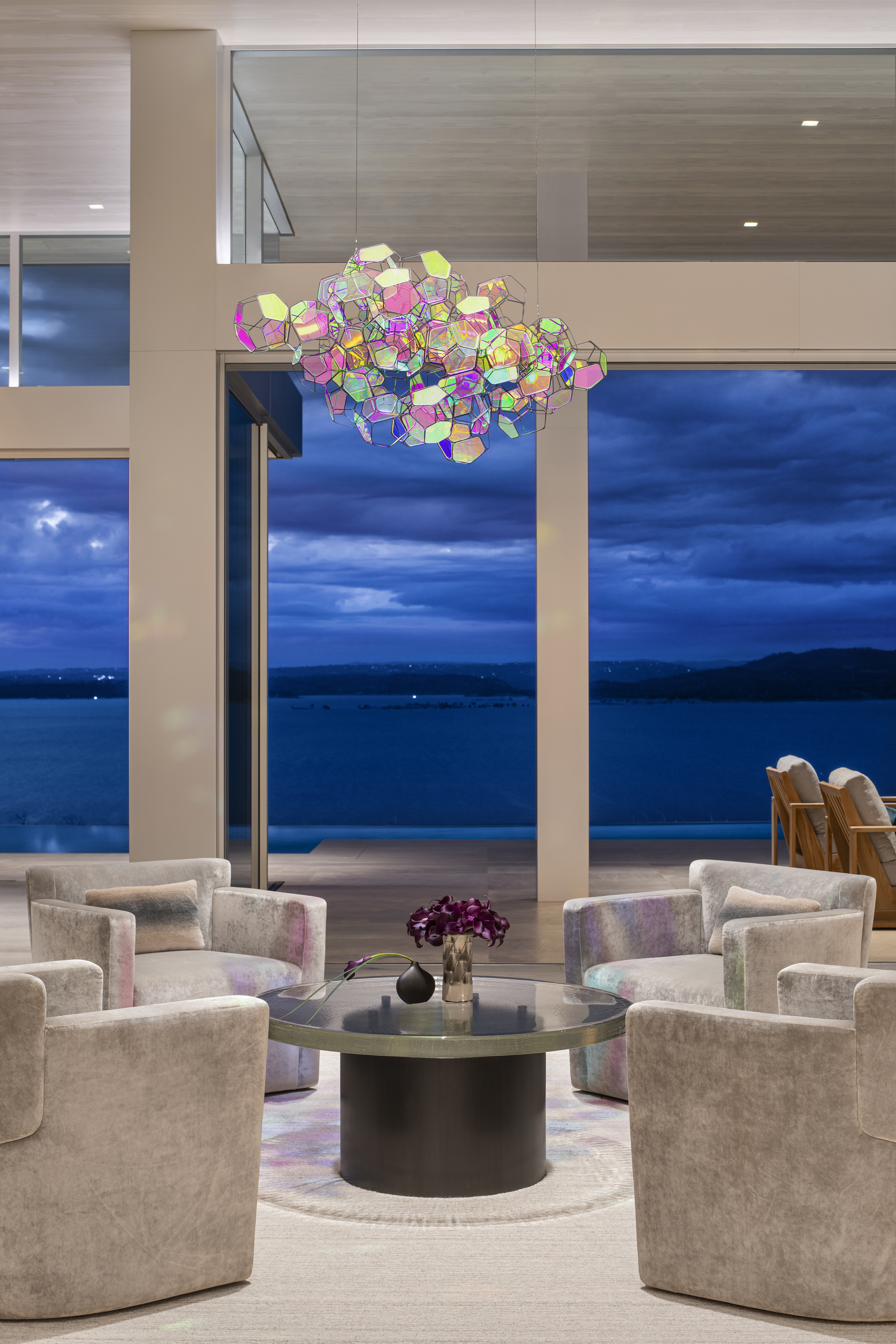 Inspired by its natural surroundings, the interiors and architecture of this residence reflect the site of Lake Folsom, literally and figuratively. Strict, modernist planes and surfaces are softened with texture and tonality, giving deference to the lake, its shoreline and the mountains beyond. Envisioned as a family home, comfort blends seamlessly with refined design and thought-provoking art.