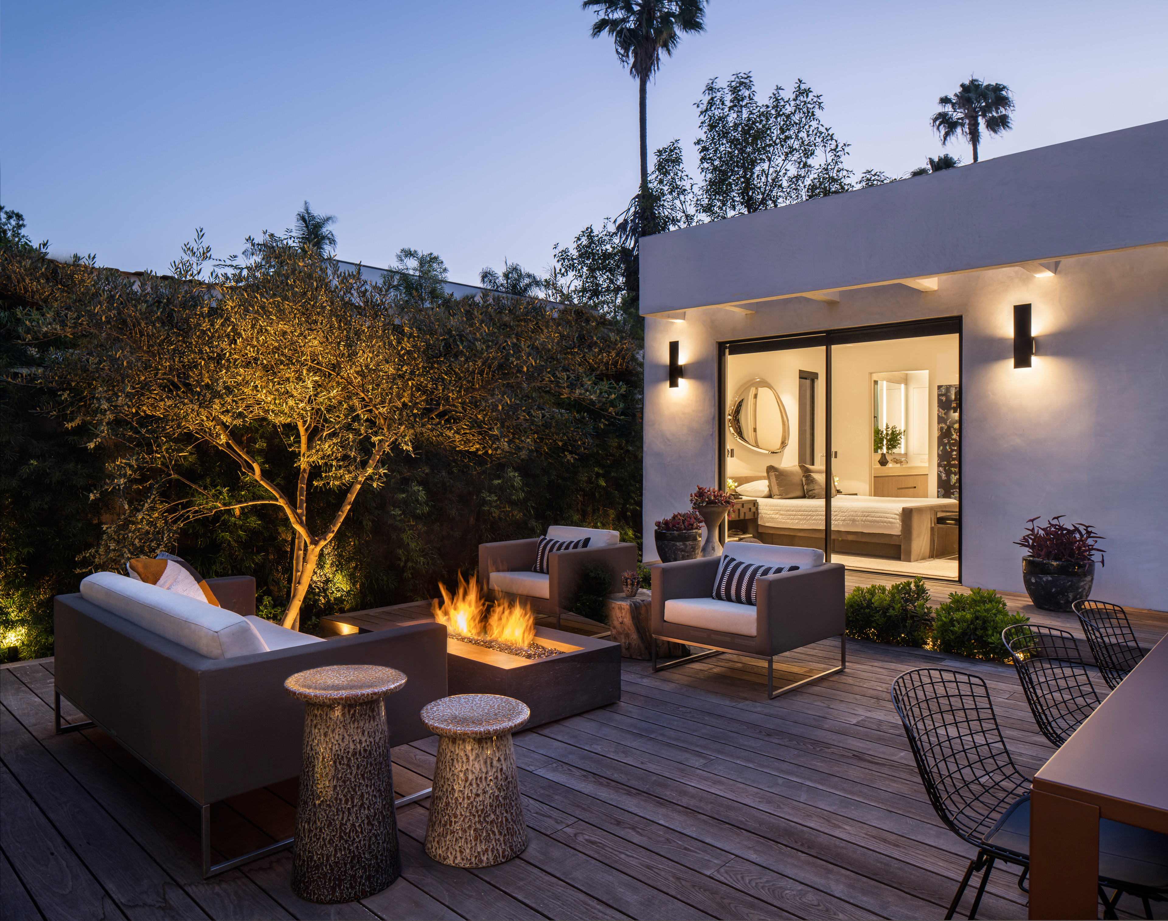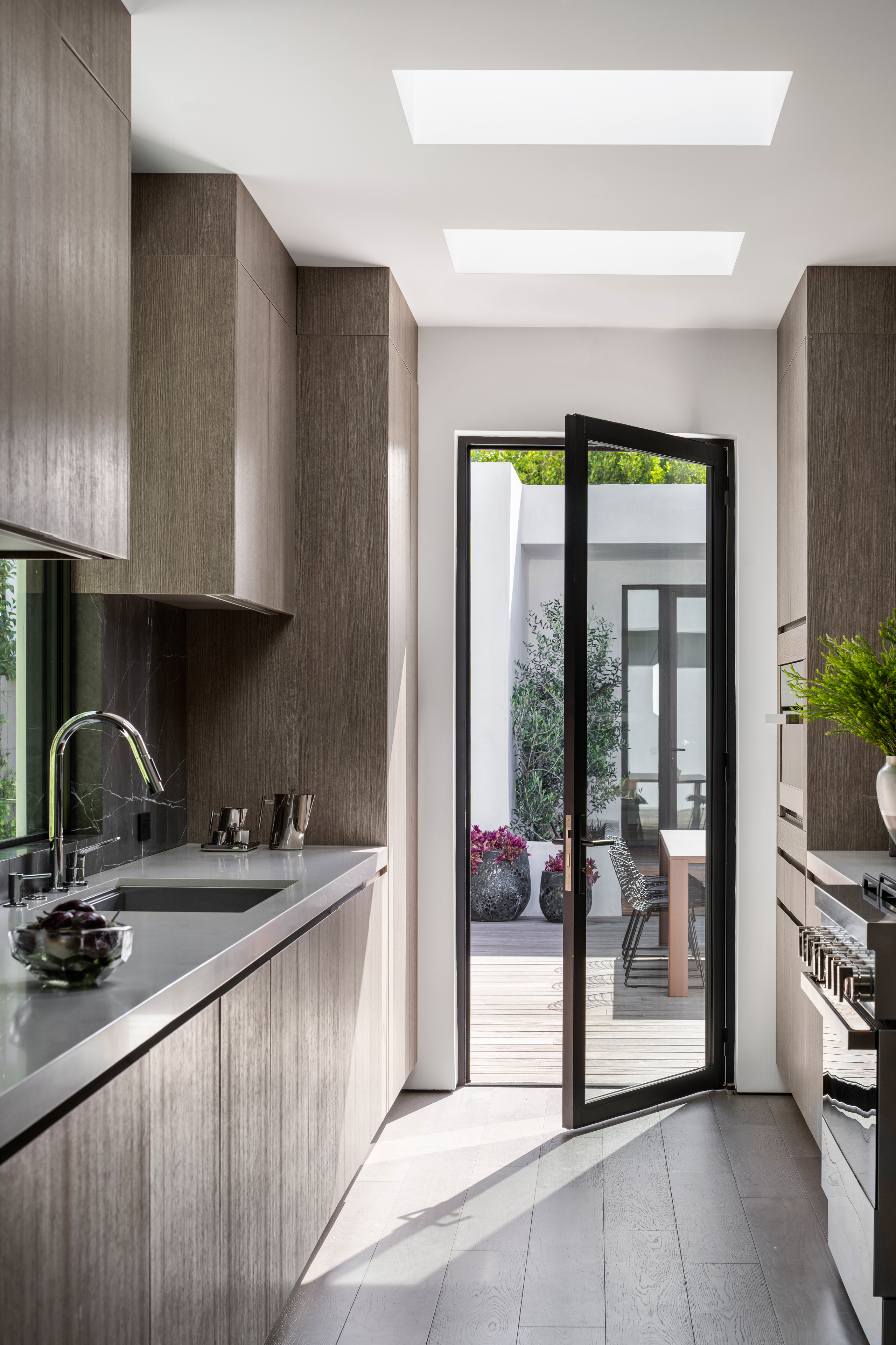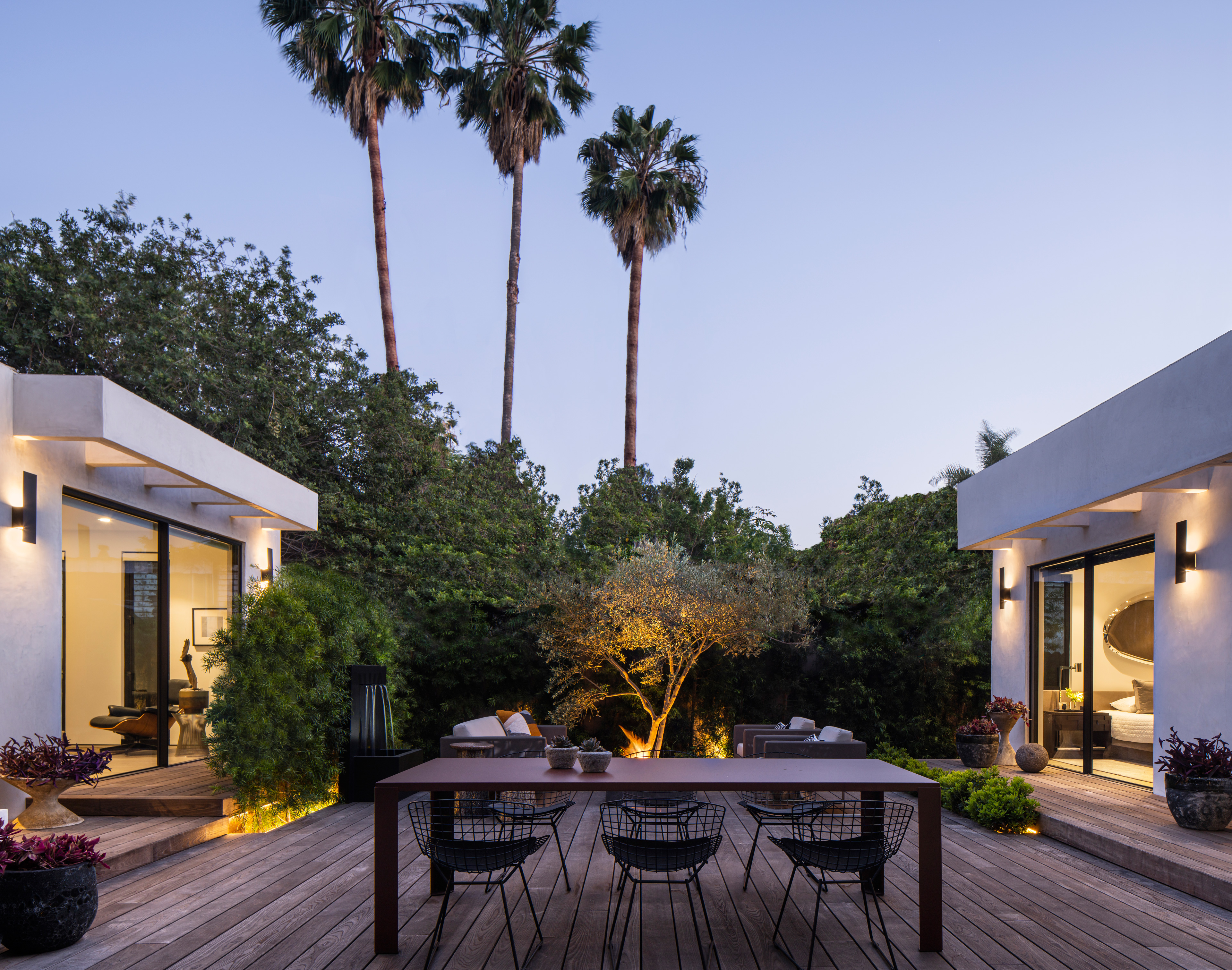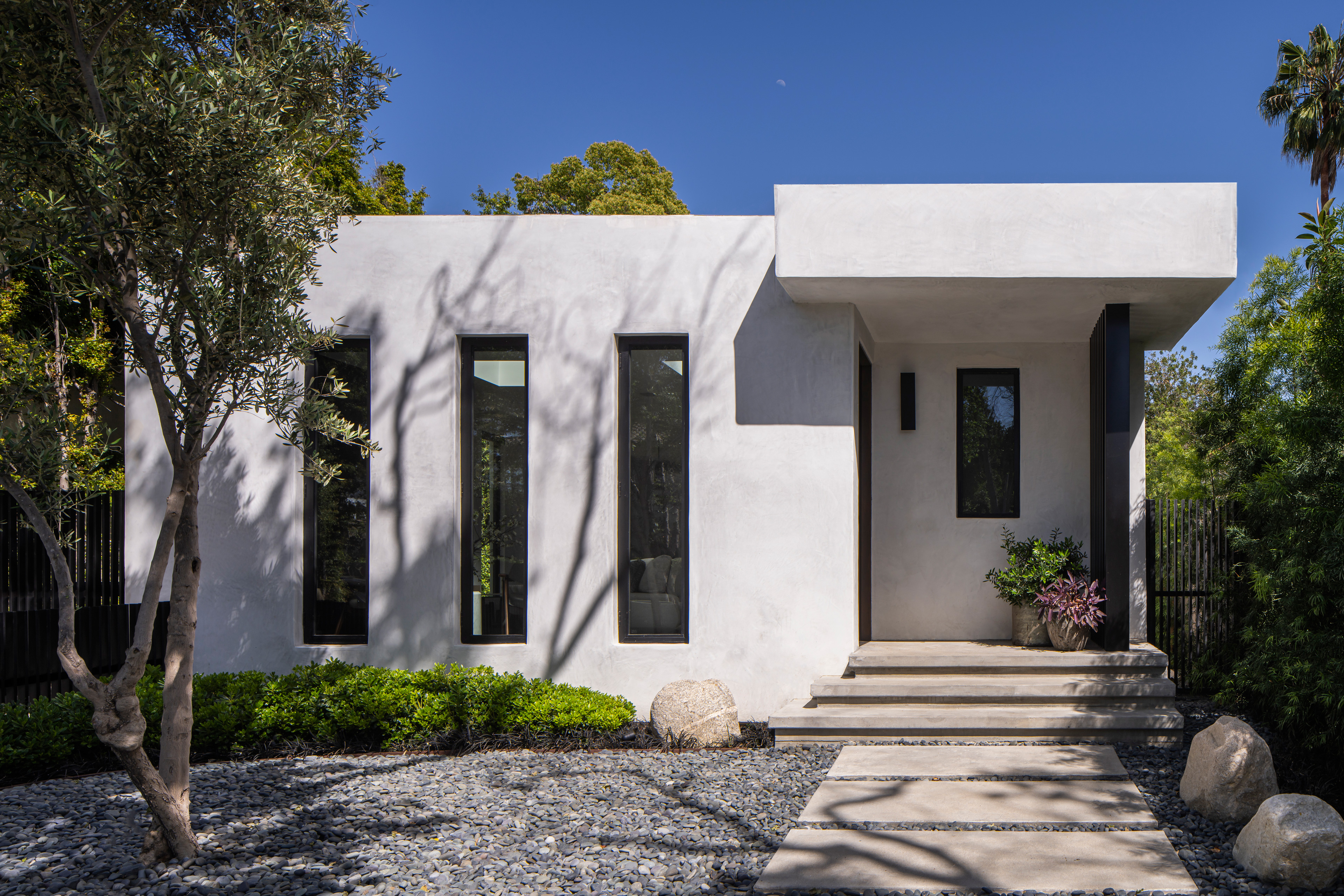 Small spaces require studied proportions and scale to appear larger than reality. The Las Palmas Residence does just that with experiments in light, linearity and a consistency of palette. Repetitive linear glazings let the interior and exterior blend, and create a cinematic shadow play. Texture and contrast provide interest, in the Brutalist-inspired furnishings and the layered use of materials.